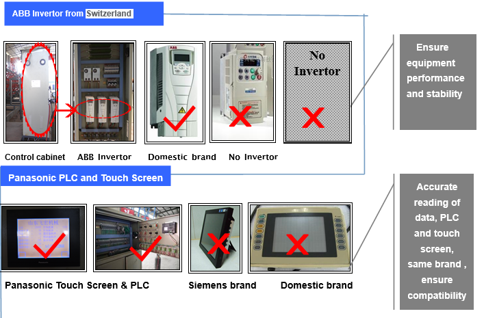 1. Sistema de control: adpot Import ABB invertor y Panasonic PLC y componentes de control electrónico de pantalla táctil para garantizar el funcionamiento estable del equipo.