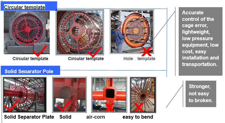 3. La precisión del control de errores de diámetro de la jaula, el error de espaciado de las barras de armadura es pequeño, se puede controlar dentro de 1 cm; Un error de espacio entre las bobinas de un metro se puede controlar dentro de 5 mm。