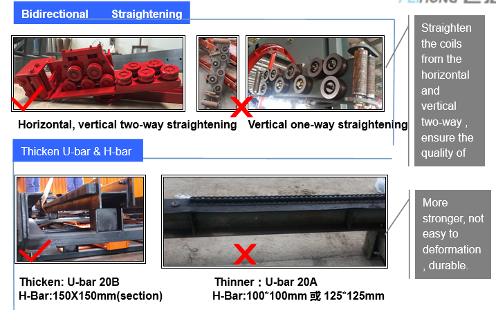 11. El brazo enderezador BI-direccional está hecho de un material de aleación de alta resistencia, alta resistencia, antidesgaste y mejora la vida útil de las piezas de desgaste, puede el ajuste bidireccional horizontal / vertical de las bobinas para garantizar la calidad de la caja de barras de refuerzo.