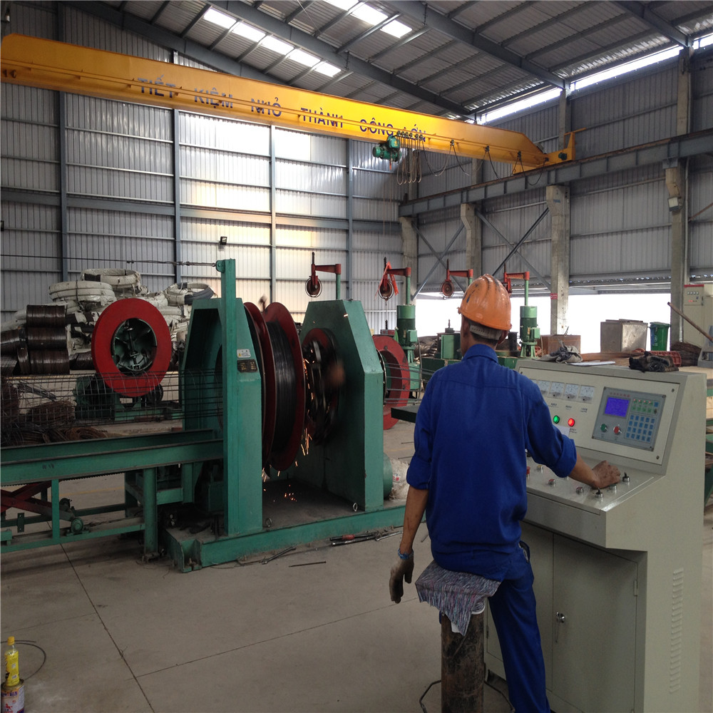 Esta maquina de jaula es totalmente automático y se utiliza especialmente para producir la jaula de armadura de barras de hormigón de alta resistencia. Se utiliza ampliamente para soldar el cuerpo de la tensión propia, el pretensado previo al estrés y la caja de barras de refuerzo postensado. Tiene las siguientes características: